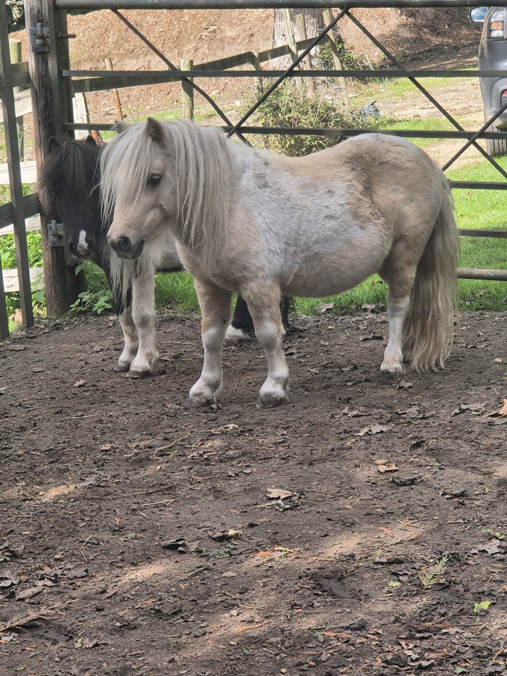 3 year old colts an outstanding example to the breed and both registered. I’ve owned them since they were tiny fluffy little dumplings and they have been the easiest companions I’ve ever had in all my years even though I was expecting them to be the naughtiest! They are really respectful of fencing and are happy wherever they are placed and whoever they are with, mares and geldings of all ages currently sharing with an old retired grumpy boy and even he loves them! They come running in the field and once they know its you they accept their head collars happily making them the first Shetlands I’ve ever been able to catch without ease!They live out 24/7 no rugs, are super cheap to keep but also happy to be stabled. Their lines have no carriers of laminitis, they are not the type to need restricted grazing. They have been bred with not only looks and colouring in mind but also careful thought and excellent health compatibility. They have won reserve champion in Wales as foals, just to add a bit of fancy to their CV.They can be sold together or separately even though I’d love to see them go together!