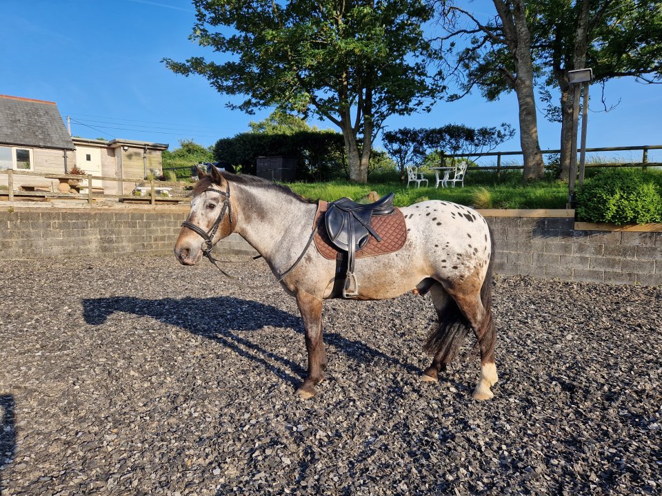 Dave is a lovely 15-year-old a full up New Forest x Welsh Cob x Appaloosa gelding, standing around 14–14.2hh looking for a new home where he can enjoy life and get out doing what he loves most – hacking and fun rides.Dave’s favourite job is hacking, and he would really suit a hacking home, or possibly a mother/daughter share. He hacks alone or in company, although he can be a little more forward-going when out with others. He also jumps, but is still green in the school for his age and can be a bit lazy in the arena and sometimes quite lazy all round .He has a kind temperament, is a total softy who loves attention, and is good with children. Once he gets to know his rider he can be a little sharp, so he would suit someone with some confidence who enjoys getting out and about rather than focusing on schooling.Dave is easy to do in all ways:Good with the farrier (currently unshod but can be shod)Good to clipStables well but lives but lives out Prefers to live in a herd or with company around himHe is currently kept on a good routine to keep his weight down as he can be greedy.Have lot's of pictures available of him - Tack and rugs included.💰 £2,500 – price negotiable📍 Based near Corfe Castle, Dorset (BH19)The right home is very important for this lovely boy this is a very difficult decision.