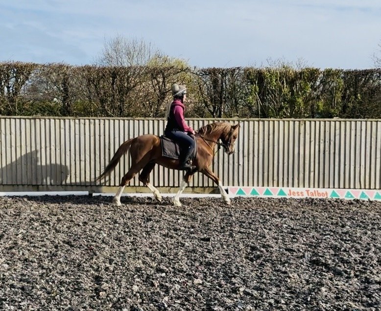 Potential 128cm M&M Competition Pony Liver Chestnut, Gelding, Welsh Section B, 6 years old. Bred by the renowned Hilin Stud and closely related to many of their superstars. A beautiful and quality pony with a temperament to match, a lovely attitude to life and a real desire to please. Professionally backed, ridden away and continuing his education with Jessica Talbot. Hacking out confidently on busy roads. Fabulous paces, great conformation and a top prospect for any child. 100% to load, clip, catch, travel. No vices or blemishes. Up to date with farrier, teeth, worming and vaccinations. A well bred performance pony and a genuine blank canvas. Ready to produce further in any chosen discipline.£3,500 ONO