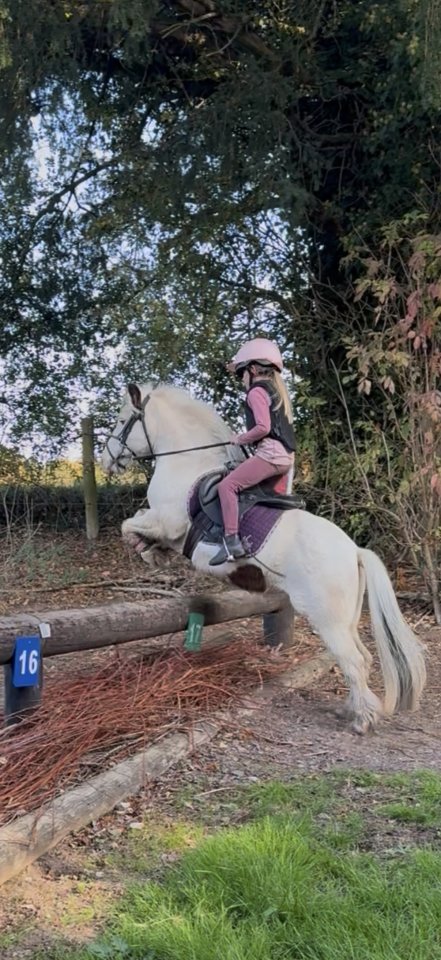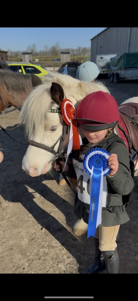 c10.2hh 8 year old CobletHas jumped up to 75cm at homeCompeting up to 40/50cmMultiple dressage, showjumping, combined training, ODE, PPCCame 2nd at her first ODEQualified and competed at Pony Club mini champs at BictonQualified and competed at Sunshine Tour 30/40Has been broken to drive (although not done any recently)Been to stay away showsLives out in a mixed herd 24/7 at the moment but has been stabledGood to catch, clip, load, farrier (barefoot)Been huntingHacks out alone or in companyLoads, travels well alone or in companyPiggy is a much loved family pony and has taught both my children to ride taking them from lead rein to confidently riding and competing off the lead rein. My daughter, now 6, has ridden her since she was 2 and Piggy has taught her so much, successfully stepping up the levels with her.She is good in open spaces and hacks alone, in company, behind or in front and can be led off another horse. Piggy is a big character and gets attention wherever we go. She is usually in the ribbons with multiple placings and 1sts. On the lead rein she will jump anything and is nippy in a jump off. Off the lead rein she has had lots of clears and placings but she is not a push button pony and can be cheeky so does need riding.Piggy is a great games pony as she’s quick and balanced, with brakes, although she can get excited on the start line. She is bold, brave and learns very quickly. We would love her to go to a PC/hunting home as she enjoys getting out and about. Although she is equally happy dialling down to teach the little ones.My daughter is moving onto her next pony so we don't have the time to give Piggy the attention she deserves. We are in no rush to sell her - finding the right home is more important so we’ll happily hang on to her and get her out hunting until we find her her next jockey£4,750 ONO with tack (including very new saddle) and rugHundreds of photo’s and videos available.