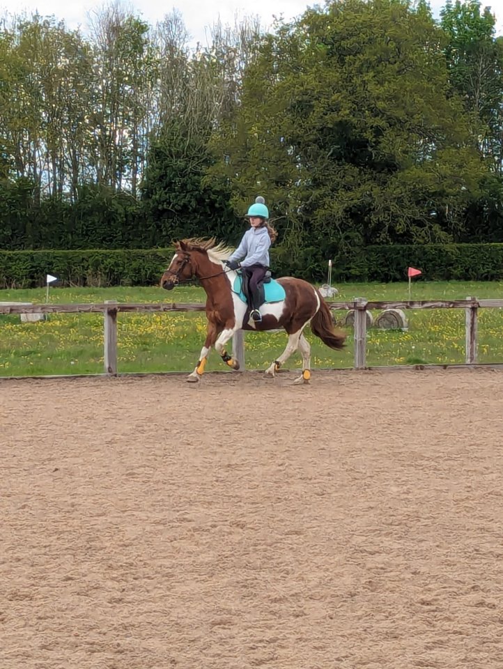 Wonderful Kenco. Kenco is 20 years old and 13hh Irish pony. She is currently being rested for a tendon injury however the vet hopes she will soon be sound and re start work. She is currently on loan having been a perfect pony for 13 year old girl for 2 years and before that she was my daughter’s pony for 2 years as a 1st pony. Kenco has been to PC camp and loves dressage but we feel she now needs to step down and have a quieter life. She must have a friend and is happy with mares or geldings but it is important she has company in the field. She will happily live in or out ideally with some shelter. She comes with a full wardrobe and tack. Ideally loan but for the right home I will consider selling her however all that matters is the right home. She has perfect manners and only has shoes on her fronts.