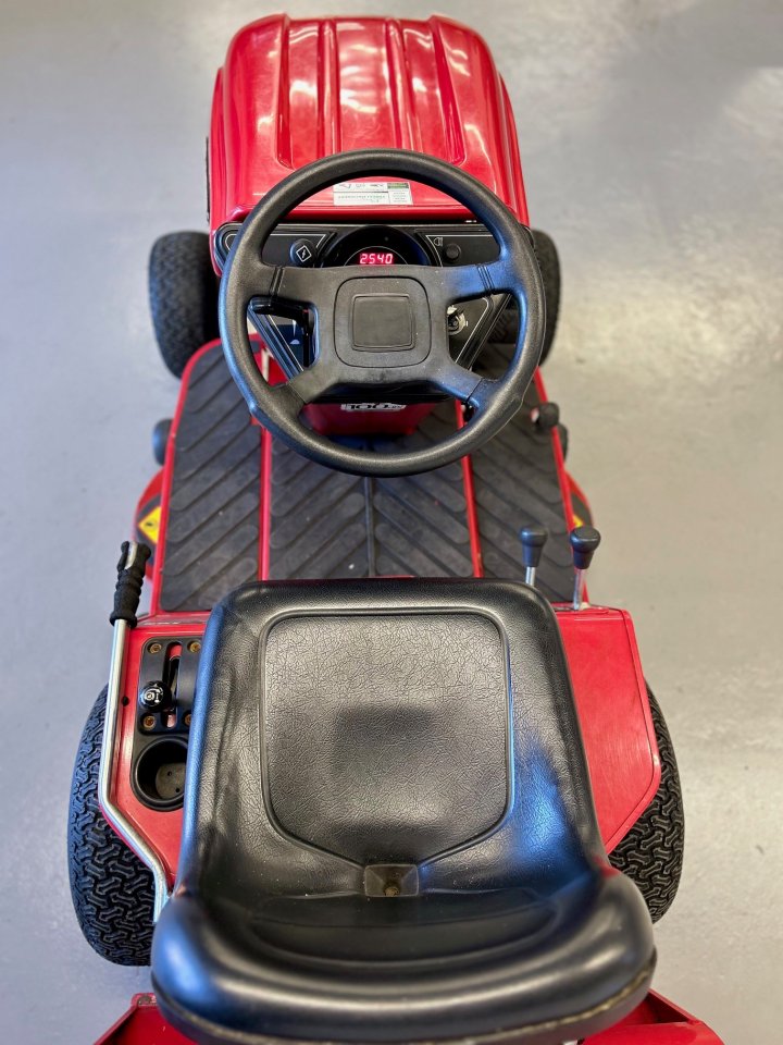 This mower has been regularly serviced, it has new blades,and arms the deck is perfect no rust good tyres, seat and bodywork. Does run but has an oil leak. Offers