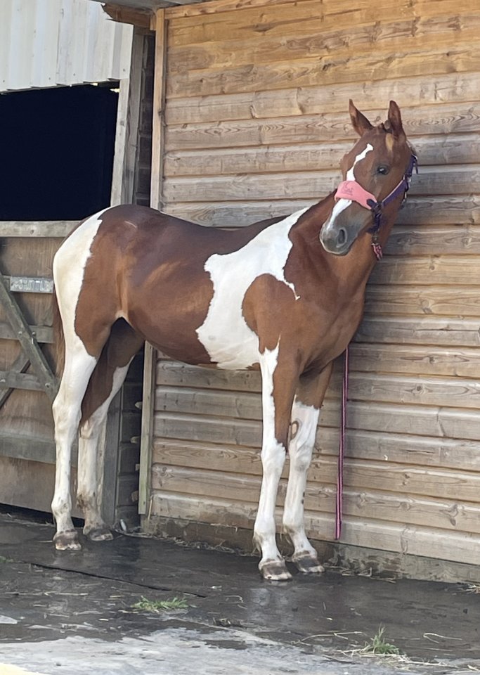 Ruby Rose is a strong skewbald filly now available for her new home. Born 10th June 2025. Recently weaned, she is eating hard feed well and thriving.She has excellent confirmation with a leg on each corner and is expected to mature to approximately 15hh. Ruby Rose has begun her basic education, including learning to lead, and has already had her first foot trim. She shows great potential to develop into a lovely mare.A lovely young horse with a bright future ahead of her.£1500 ono