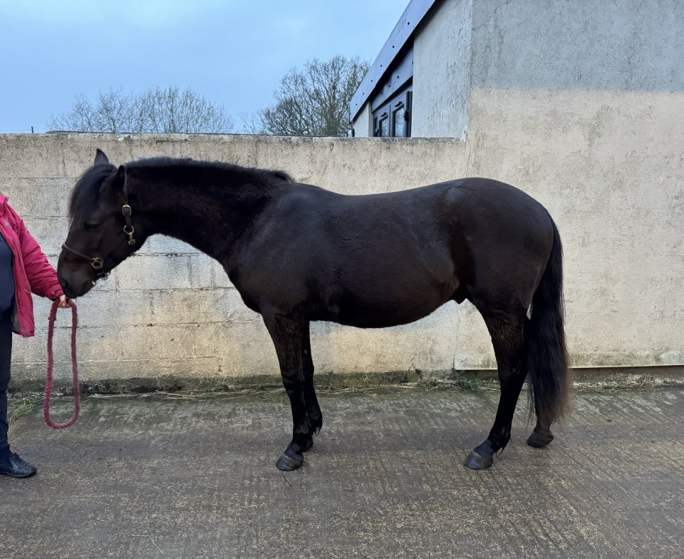 Baaline bespoke, a beautiful registered part bred Welsh coloured filly rising 2yrs (April). Dolly is expected to make a full up 14.2hh, currently approx 13.3hh at the wither and bum high. Her mum is a Welsh section B with outstanding breeding and dad is a sports horse type, she has two full sisters, one of which made 14.2hh and the other 15hh. Sweet filly who is easy to handle in all ways, handled daily, been shown twice, loading and travelling well. Currently in at night and out during the day, will happily stay in the stable in her own without a fuss. Sadly she is outgrowing her pony stable and without building another at further cost we won’t have the room her for much longer.
