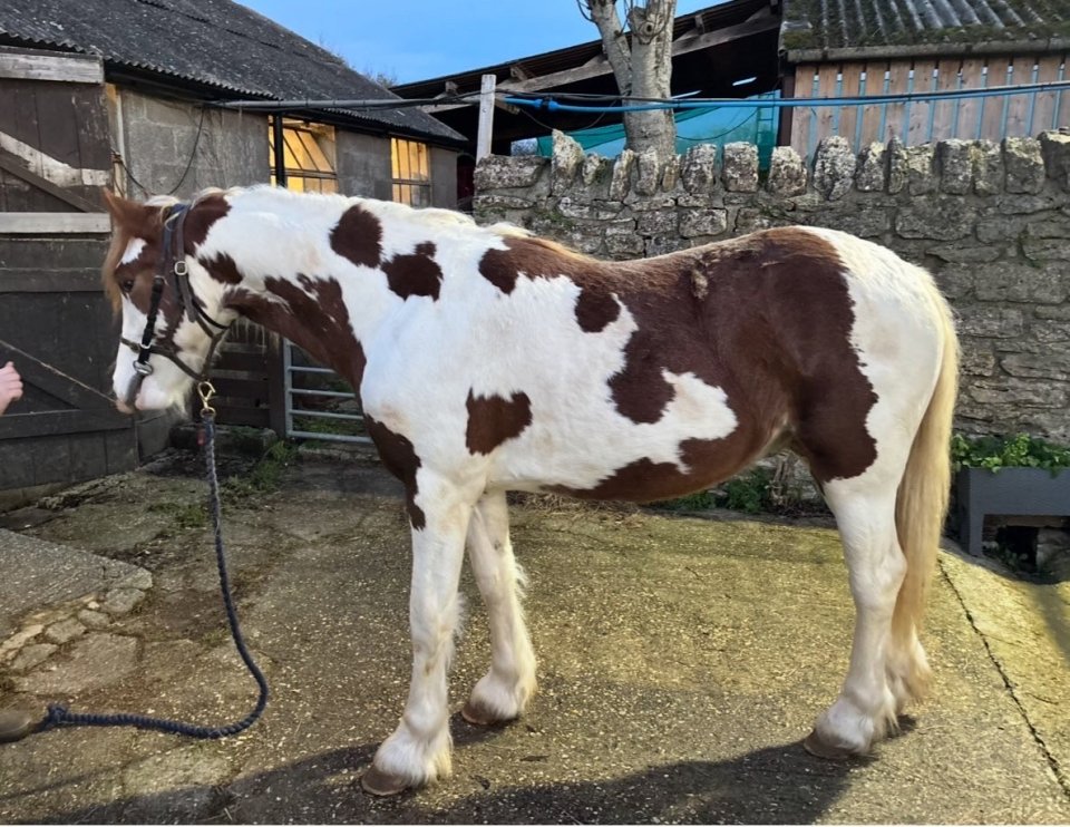 Currently standing 14h this lovely chap is expected to make min 14.2h. 2 year old. Marked like a map and very eye catching. Clean limbs, straight and correct. One blue eye and one eye is half blue. He is very well handled and owned since week old. A well behaved gelding who is polite and likes to please.He is excellent with farrier and vet. Leads and ties up, excellent to groom etc and happily stands to be hosed/bathed.Bitted and worn a roller. Currently on daytime turnout on own and happy on own or with others around him. Stables happily. Has seen tractors and chickens and cats! He has seen the hunt when they have been local. Respectful of electric fencing. Loads into trailer. Passported, vaccinated and wormed up to date. No vices. Never needed veterinary attention apart from routine vaccs and castration. Eligible registration TGCA CHAPS BSPA£2000 open to offersOnly for sale as concentrating on mares and fillies.