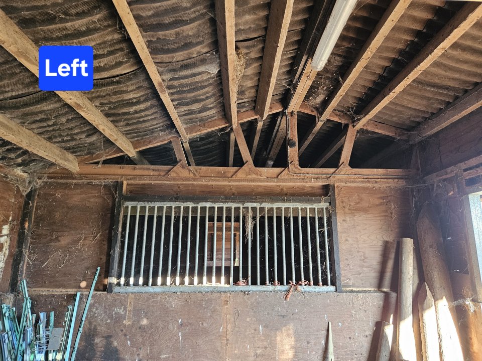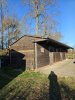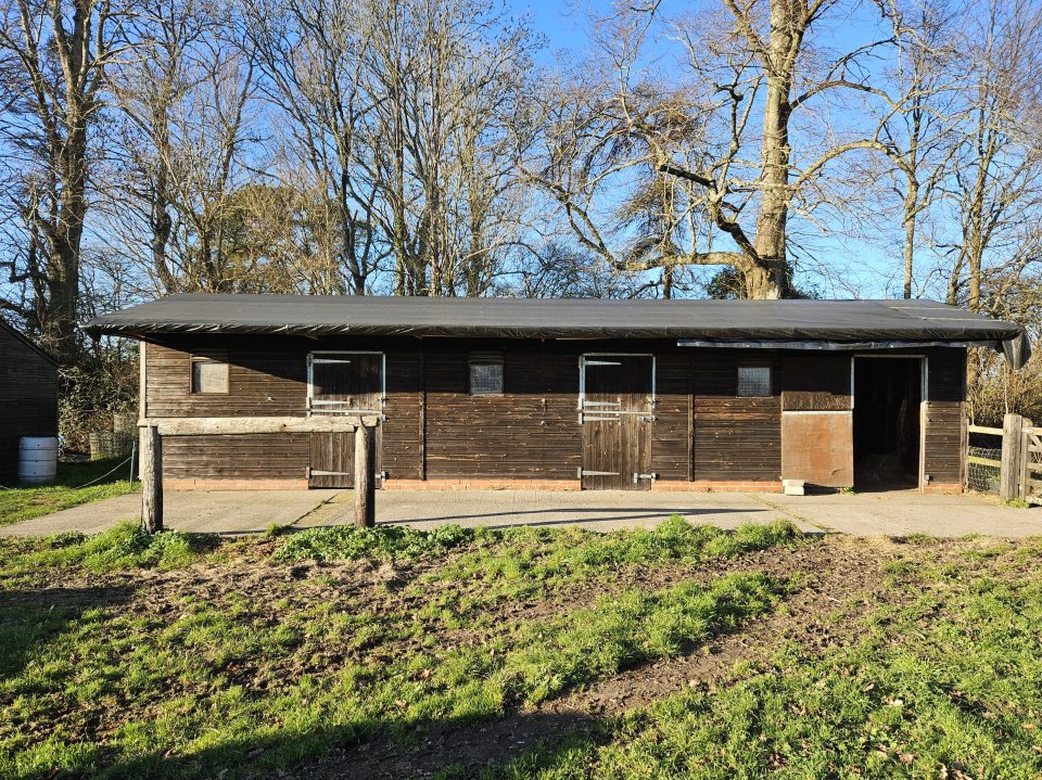 I'm listing this as the frame only since the roof & cladding have seen better days & the majority will need replacing. The buyer is welcome to salvage any roof or cladding they think will be useful. The frame is structurally sound, it's good & solid with many years life left in it.Each of the 3 stables is a generous 13ft6 × 11ft6 with 10ft ridge height & 7ft6 eaves height.All 3 are half boarded. There are metal bars between the left & middle stables.The back seems to be built from 10ft & 4ft panels. We can help with dismantling it.I have more photos if you want to see more.All for the bargain price of £2000.Needs to be gone by end January.Thanks
