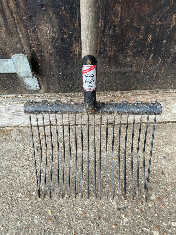 Long handled shavings fork. Old but in good condition and it hasn't had a lot of use as I prefer a shorter fork. The tines have never been bent. The wooden handle has no sign of woodworm and the fork has always been stored under cover.£12.00 ono.