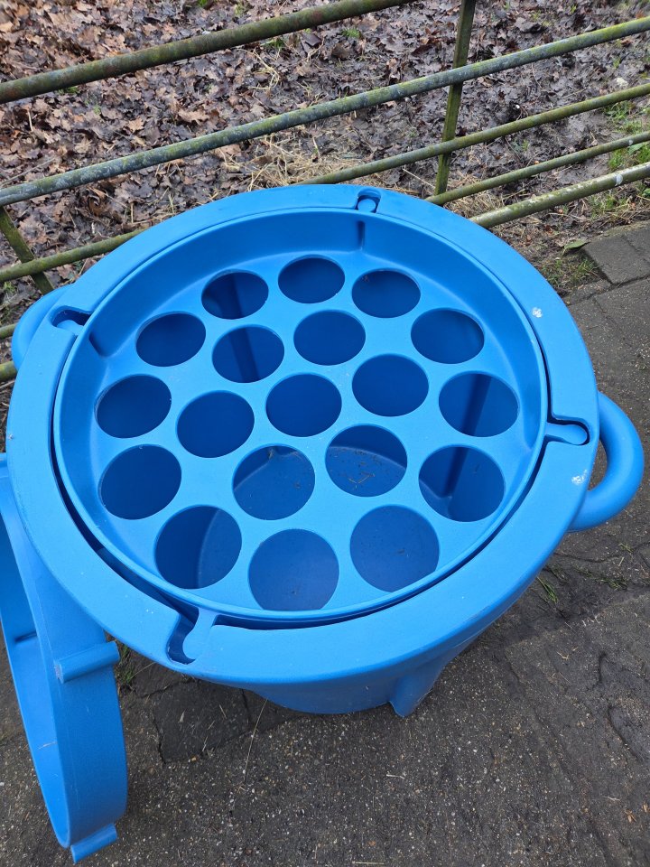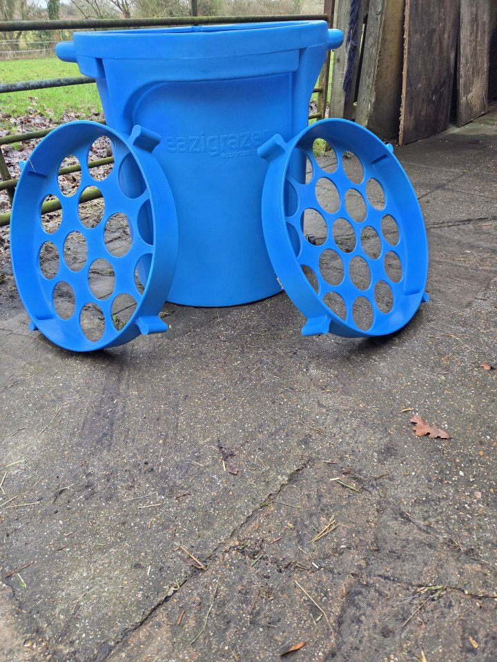 Eazigrazer blue comes with 2 regulators. One has 70mm holes and the other has 90mm holes. Drain plug and rubber stopper.Also spare drain plug and stopper.Eazigrazer is the ideal slow hay feeder.Saves time and money.Easy soaking reduces dust and suger in your hay.Eazigrazer allows you to soak, drain and feed without removing the hay.Safe and portable can be used in the stable and paddock.Brand new never used. Cost £320.00 last year.I am selling it for a bargain price of £280.00