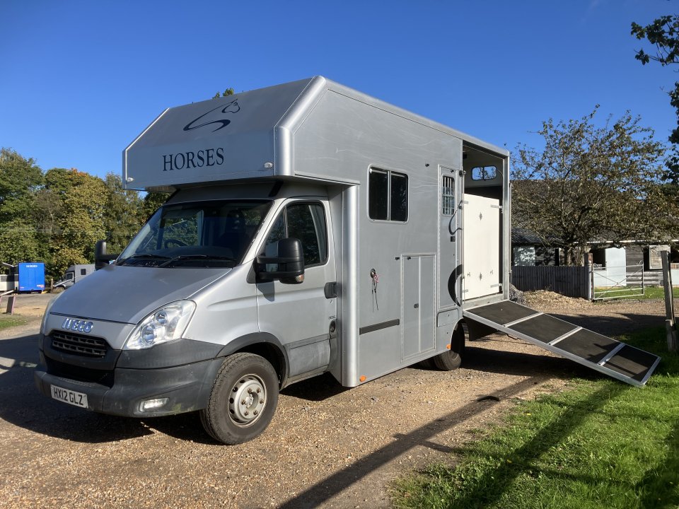 Trevett & Smith 7T forward facing horsebox For sale on behalf of a clientIveco Daily 70C, 2012 chassisBuilt in April 2018Huge payload of over 2TCurrent mileage: 106,000Plated until September 2026Horse areaStalled for two forward facing. 9’ nose to tail measurementBreast bar set for big horses, with the additional benefit of having the option for a lower removeable breast bar and boards to fill in below to travel smaller ponies/Shetlands.EVA rubber sidesPull out upgraded steps directly into the horse areaRug rackLiving area6’ compact size4' Bench seating with under-seat storageFull height wardrobe with hanging rail and boot storageSeparate large above-counter cupboard with shelvingHob, sink, water pump and tankGenerous sized open luton for sleeping or storageExternal tack locker to take two saddles and bridlesExternal skirt lockerReversing cameraJust gone through a years plating.All previous work carried out at main Iveco workshopLots of additional items included: coat hooks, gas kettle, kitchen wear etc.Ready to load up and go.Private sale on behalf of a client, no warranty implied or given. All independent inspections welcome.£26,000 ono.For further information or to arrange a viewing please call or email Colin or Tamzin on 01794 324566 / Colin@trevettandsmithhorseboxes.co.uk