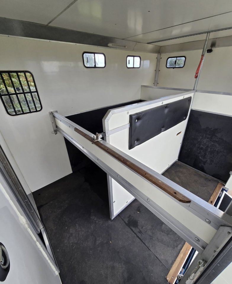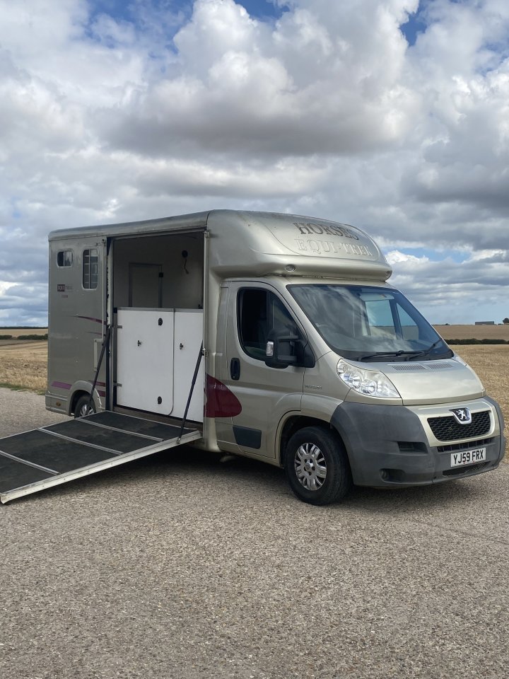 The important stuff:* Easy drive, 5 forward gears* Mileage: c. 155 miles* Sideloader - 2 horse forward facing - easily can fit 2 x 16.2hh* Payload 1400 (1600 unladen, and detachable pony door removed)* Plated until end of May 2026* Clean 3 seat cab (non tilt) with cut through to living* Overhead cupboards* Fridge (gas/electric)* 2 Ring Calor gas hob* Leisure battery, sockets - hook up cabling included* Bench seat with under storage - can convert to small sleeping area for child* Wardrobe with integral portaloo* Roomy luton with plenty of head space - many comfortable "sleeps"!* Through door to horse(s) - tack storage area, back shelf storage* Externally, storage in skirt and back lockerOwned for 8 years and much loved, but sadly now not used enough to keep her on the road where she has many more miles to travel. £6.5K.