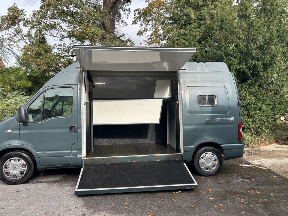 Renault Master DCI 150 Manual Horse BoxHappy Horse Boxes conversion in 2022 and owned by me since.The horse box weighs 2.3 ton, leaving a payload of 1.2 ton and can comfortably take 2 horses.MOT until 08.07.2026 - No advisorys Reg NU08 BSZ3 Owners from newcomes with part service history and Mileage is 174,400Horse box includes:10mm Rubber walls in horse areaReinforced bulkheadFixed breast bar Partition with padding and spring bolts to secureLiquid rubber floor 4 LED lights 2 windows for natural light and air circulation1 Pop up roof vent and 1 wind driven roof vent for additional air circulation Steel frame ramp with Aluminium planks, instead of ply, for security and strength with carpet finish, with one gas strutBarn Top doors Lock for security1 large storage box and 1 x seat with storage in rear of van3 x external tie up rings Internal and external hard wired camera system Spare wheel All tyres are in good conditionMechanical inspections are welcome.£8,995Viewings can be done at Marwell or Stubbington (Hampshire)PM for any additional information and more photos