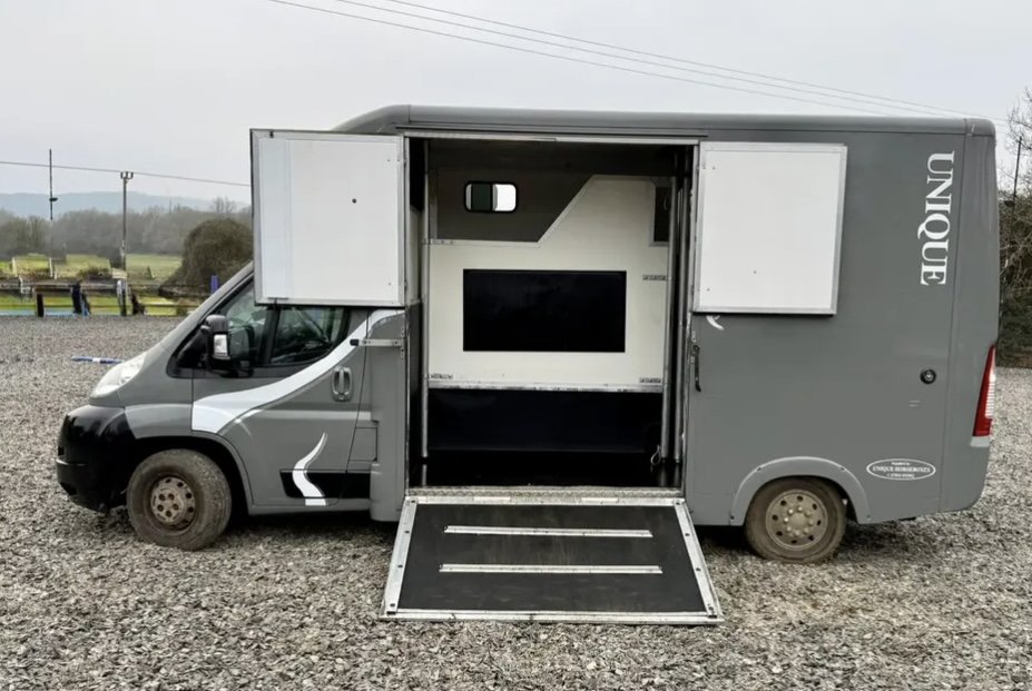 •Year: 2005.•Cc: 2463.•Mileage Approx 93,000.•Great little box and very easy to drive. Perfect for first timers or lady drivers. Simply being wasted as I no longer go out and about.•Camera in horse area. Reversing camera there but not used. •Living area with two ring burners and a fridge. I have removed the gas bottle as it was never used – could easily be replaced.•Sleeping area for two small ones above the driving area. Fridge, seating and a small table in the living area. Coat rack for storage.•Two pony/horse front facing with tie rings in the horse area. Please note there is no side ramp - the horses walk in and reverse out of the lorry•Tack storage area on the drivers side and a saddle store on the left hand side of the lorry•MOT June 2025. •4 x new tyres July 24•Brake Pads replaced July 24•New battery May 2023. Isolator fitted to save battery usage.•Rear ramp was “re-vamped” with new wood. July 22.•Payload never officially confirmed, but thought to be just under 1 ton including fuel.•Starts first time every time and has never let me down•Based near Frome, Somerset, BA11.•£9,000 ono.