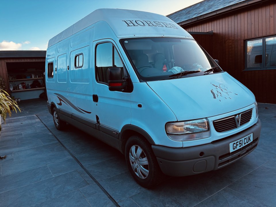 I have for sale my lovely Vauxhall Movano high to[p 3.5t horsebox. Brand new MOT November 2025White Vauxhall Movano DTI 3500 LWBEngineer size 2799 CC2-Axle-Rigid BodyDate of registration is 27th September 2001Milage 89kGood solid ramp with doors same moulded to the contour of the body, this lorry is regularly checked by a well known local company who keep the lorry in tip top condition.Regularly Serviced and looked after. Lorry is in constant use and will be until it is sold.No expense has been spared on this faithful lorry. It has had new clutch and recently new slave cylinders. All MOT work was completed by the garage and I have extensive folder of all works done, it previously belonged to a good friend so aware of all the history and how well it has been looked after!I cannot stress how faithful this lorry has been and has been a fantastic 3.5t starter lorry for me, can be driven on a car licence. It is easy to drive and the horses travel well in it, carries my 16.3hh with ease. Never misses a heartbeat and starts every time.£8,000 OVNOMore photos and video on request. Based in Wimborne BH21