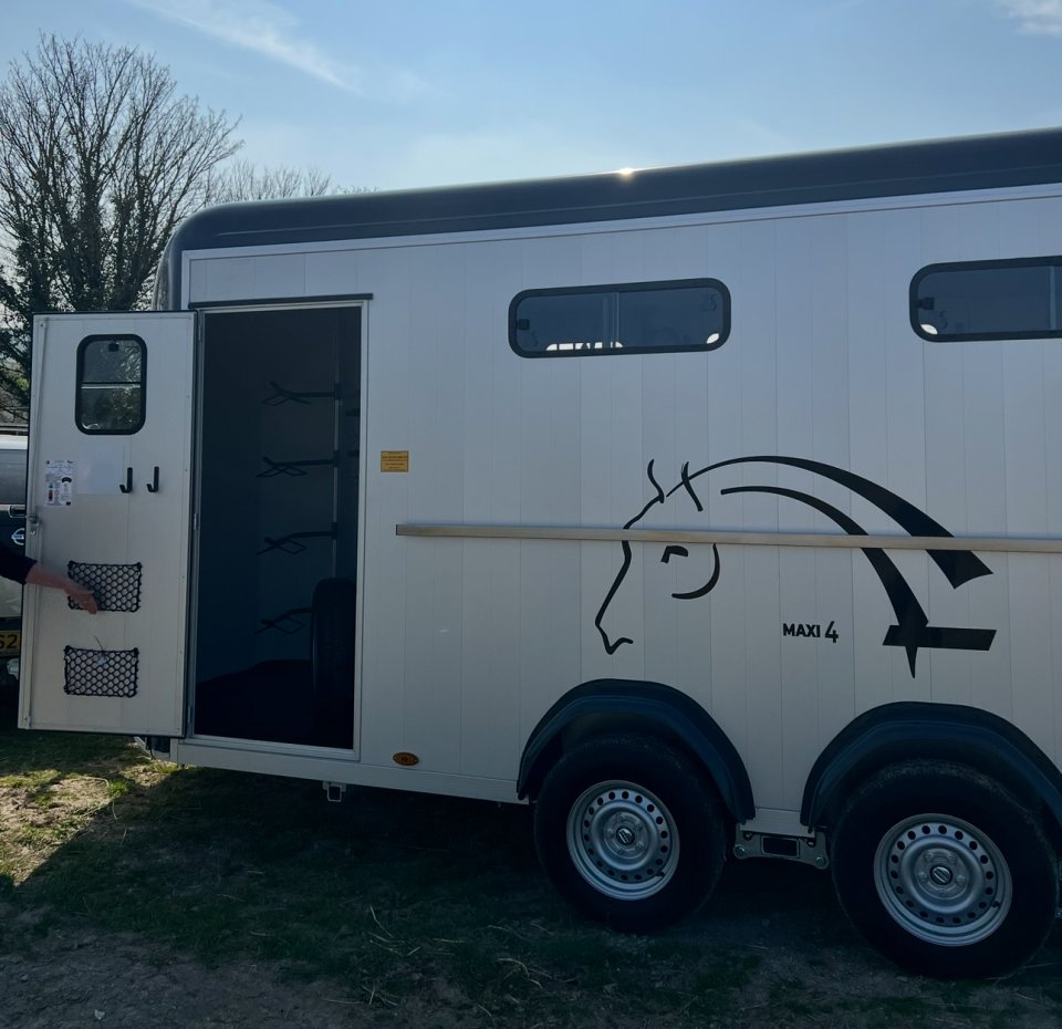 CHEVAL LIBERTE MAXI 4 - horse trailer in grey.Bought brand new in 2022. Serviced yearly. Sad sale as no longer use.Tack room / Dressing room. Saddle racks. Bridle racks. Spare wheel. Horse area has adjustable partitions for 4 horses or can carry a horse & carriage. Full length rug rack. Front & Rear ramps. Rear can be a ramp or barn door. Comes with cheval add on - interior camera to watch horses in transit from your vehicle. Pullman suspension. Alloy floor & sides so no problem with rot. Original paperwork. Tows superb. Very good condition. Genuine bargain for the price. 07709885066Salisbury, WILTS£9950 Ono.