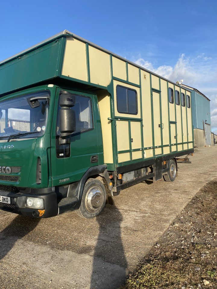 Smart, reliable horsebox.Iveco 2001 CRG.75.E.15Reliable and starts first time. Easy to drive, cruises well on main roadsThree seats in cab, two additional seatbelts in living areaSmart day living, newly fitted two years ago, spacious, practical, clean and dryWood effect, lino floor in living - easy to maintainPlenty of hooks and hanging spaceStorage under seats in living areaNew, custom made seat cushionsLarge tableClean, tidy cabMechanically in very good shape, MOT until end of SeptemberBrand new sides and total refit and respray a couple of years ago Water tank and pump, external water tap and hose.External fill water tankLeisure battery with charger, and isolatorMain battery isolatorNo limiter on speedWell lit living and horse areaBright loading lightNew rubber mats and rubber ramp coveringExternal tack locker (not into horse area) and additional locker underneathTilt cabStalled for four, herringbone. Easily takes big horsesHas carried 5 small ponies with easePayload approx 1.8t, weighed with full tank of fuel and waterIt has taken us around the countryside, to competitions, pony club, cross country rides etc. 189595km on clock (this may change as it is still in use)Please What's App for more information and photos.Can be viewed near Basingstoke / Newbury. £10,000 ONO