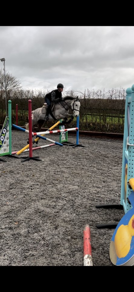 Pippa - full up 14.2, 8 year old cob mare.Pippa is a super sweet and fun little mare that’s done a bit of everything. Takes the leg well and looks and rides more 15hh. Showjumped to 90cm over in Ireland winning a winter 80cm league last season, she’s well established round a course of fences. Done fun rides/hunting/pony clubbed. Hacks alone and in company and isn’t phased by the machinery around the farm here. Leg on ride until you get the jumps out! She loves her jumping, she’s keen and can be strong to jump but a real point and shoot type that makes you giggle and just want to keep having fun. Rides on the flat in a snaffle with Pelham for jumping/fast work which she is totally manageable in but for this reason probably wouldn’t suit a tiny or novice rider.Whilst she would happily carry on and have fun whizzing round some courses, please don’t be put off and think she ‘needs’ to be out doing something. She’s just as happy hacking and doing some polework so she doesn’t need a job but she would do one if you wanted to! Boxed up to the gallops with us recently and worked sweetly in front and behind and enjoyed a little outing. Pippa is an absolute pet on the ground. She is super easy to have around, lives for a fuss and a groom (and a carrot or two!) and really is a best friend type. Good to catch/farrier/load/travel etc. Passed 5 stage vetting before import from Ireland. Previous rider moving onto horses. £900007581238106 - please WhatsApp message for videos. If you call and I don’t answer please send a text - NOT voicemail (they don’t work on my phone!) and I’ll get back to you.Located Farnham Surrey.