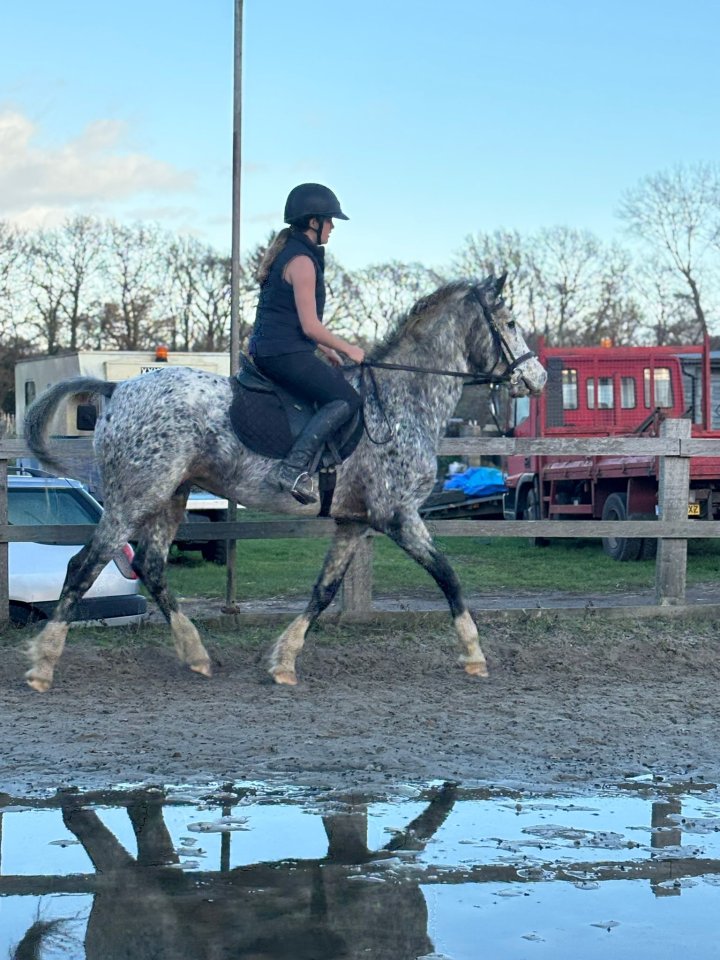 Twinkle 15,3 spotty mare 14 yo super pretty mare lovley natured been in riding school most her life but due to closure shes now here to find her new family ,Twinkle has a heart of gold and is super easy to do in and out the box , she vice and injury free open to any vet ,Twinkle is amazing hack and is not strong spooky hacks alone or company for hours on the buckle and in open fields and is always snaffled mouth , twinkle has three lovley floaty safe paces in the school and is willing to try anythink shes safe and senisable , twinkle does poles and pops jumps for fun and isnt at all fazed , she make a cracking family type mother daughter share type first to view will buy ,Twinkle is sold with tack rugs in price transport available will sell unseen .6000 pounds