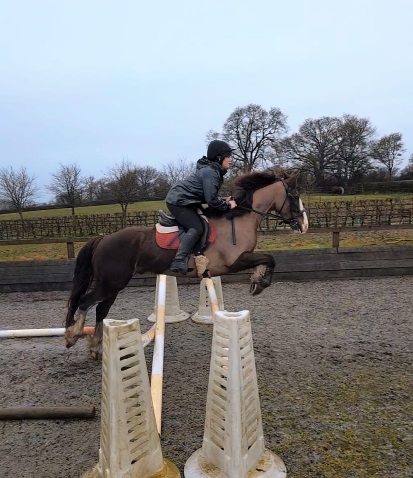 Annie - 15.2, 5 year old (2021) Irish cob mare.Annie is the epitome of a supercob, she has so much to offer and is such a lovely kind soul that only aims to please.Backed and ridden away last summer and mainly hacked. Annie was imported from Ireland in November from the breeder and is ready to go on to her next adventure.3 good paces in the school and surprisingly naturally balanced for a horse of her age and type. A very comfortable canter and not big and bouncy. Hacks alone and in company, loves to box up and go for a hack to explore the countryside and pop a log in the woods. She’s a lovely forward thinking brave sort that wants to do the right thing.Just started popping a few fences she has a lovely jump and is really honest. She really would go on and do a variety of jobs whether that be exploring the countryside, fun rides, riding club, hunting. World is your oyster. She has been a real pleasure to have and I ride her last every day so that I always end the day on a good note with a smile on my face! She is still learning so wouldn’t suit any very novice riders. Good to catch, bath, load, groom, tack up. Clipped for the first time recently and was a bit worried at first but then started to enjoy the scratchy bits so settled down and stood quietly. Did have a set of shoes on but is now barefoot as she really didn’t need them her feet are solid. She thought the farrier was a bit scary but again, just young and needs reassurance. £995007581238106 - please WhatsApp message for videos. If you call and I don’t answer please send a text - NOT voicemail (they don’t work on my phone!) and I’ll get back to you.Located Farnham Surrey.