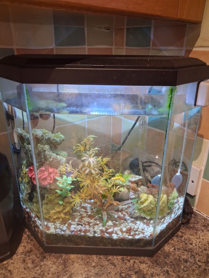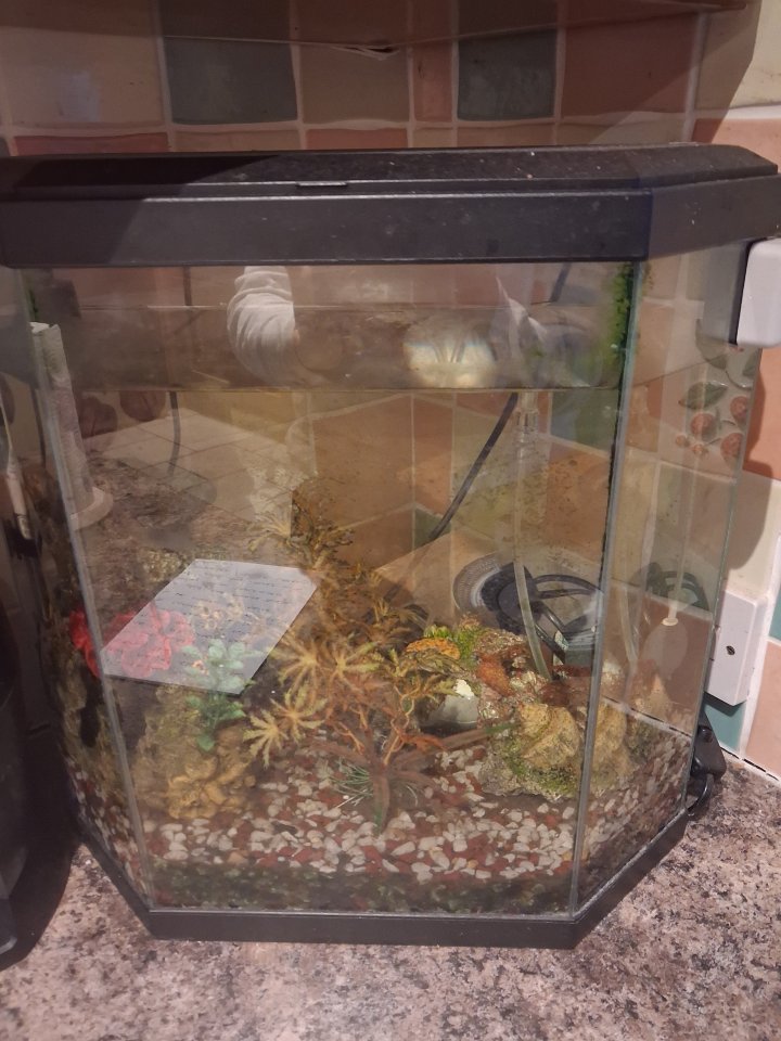 Pretty much a full set up for a very spoilt hamster. A large cage, plenty of accessories (bridges, houses, cork tunnels, logs), bedding (care fresh), food, treats, exercise ball and a super silent bucatstate exercise wheel! (Plus the tub we used with sand in for the toilet and the remaining sand - this made it very easy to keep the cage clean)There are a few gnaw marks here and there, but nothing that effects its use or security.Approx Dimensions: 49 cm Height, 56 cm depth, 96 cm width