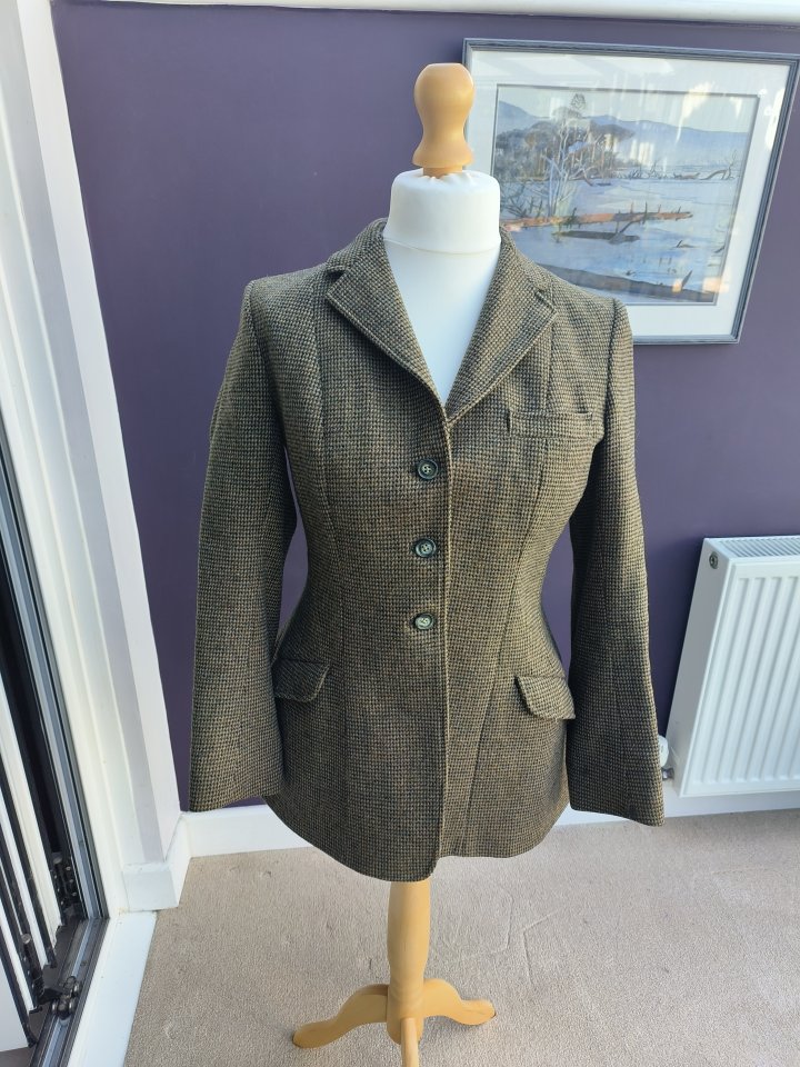 Hacking jacket, scotch Tweed. Perfect condition. Horace Barton and sons of Cheltenham. 36. Size 12/14. £50. Green Tweed.pure wool.Sherwood forest hacking jacket size 14/16. Wool , acrylic. £35 very good condition.Caldene Riding jacket. Black with velvet collar.ladies 36.Excellent condition.£35.Black riding jacket. Easy rider.polyester size 14. Excellent condition £30