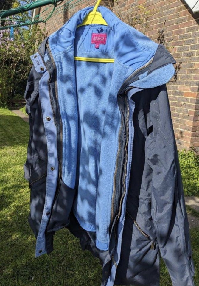 MUSTO WOMEN'S 3 IN 1 PERFORMANCE RIDING JACKET, SIZE MEDIUM (14), blue.MUSTO Performance wear needs no introduction, they make quality riding wear, please see their website for more information.This Performance jacket has all the usual riding features, including a front flap to cover the front when riding in rain. Also extendable side flaps for greater movability when riding. Or keep them closed for a smart casual walking jacket.Detachable hood.This jacket is a 3 in 1 jacket, it's a winter jacket that converts to a summer jacket by taking the detachable waistcoat out or you can use the waistcoat on it's own Spring and Autumn.This jacket was over £150, asking £80.Collect from SO43 7GL or can post at cost.