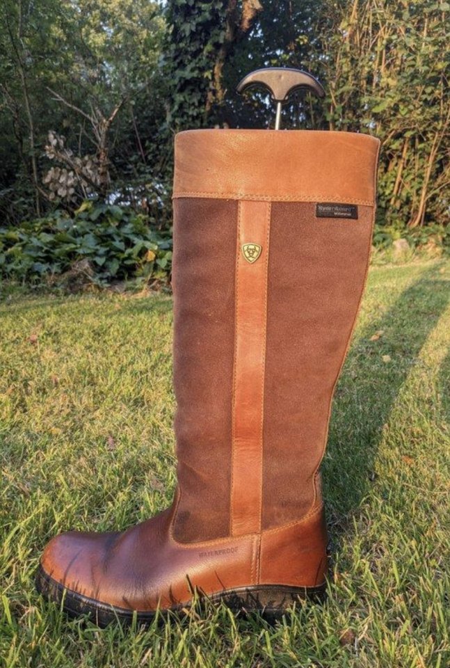 ARIAT WINDERMERE TALL RIDING BOOTS, womens size 6.5.Only used a few times. Cost £185, asking £95 including boot shaper and boot bag.Collect from SO43 7GL or can post at cost.From their website:The Windermere country boot is ready for anything – chores at the yard, an afternoon ride, and more. This refined classic features a stretch gusset for a confident fit and an emblem logo hardware design detail. It's complete with a rider-friendly outsole and is waterproof too.•4LR™ technology for support and cushioning•Breathable Waterproof Pro™ membrane construction with waterproof, full-grain leather and suede upper•Medial stretch fit gusset•Flattering topline with hardware detail•Stirrup friendly outsole•Non-marking, barnyard acid-resisting Duratread™ outsole provides maximum wear resistance and flexibility.