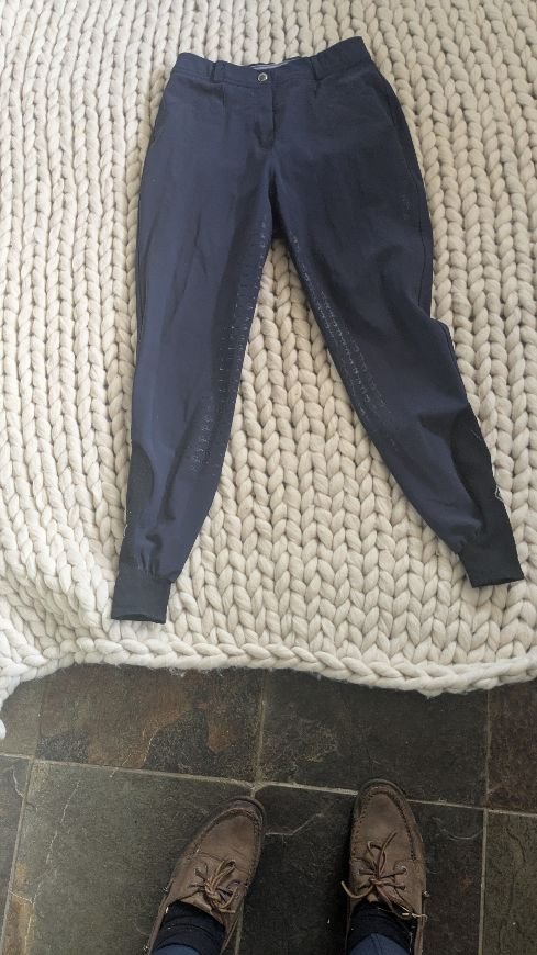 IRIDEON WINTER WIND PRO RIDING JODPHURS/BREECHES, women's size Large (12-14, see size chart).Never used.They cost over £100, asking £50.From their website:The ultimate in colder weather riding breeches, rain, snow, wind and mud resistant!These Wind Pro breeches from Irideon are made from bonded Wind Pro Polartec fleece with a Nylon Spandex outer making them soft and warm on the inside and touch, hard wearing on the outer.The Wind Pro fleece performs up to four times better at blocking wind the most conventional fleece breeches, coupled with the Nylon outer providing protection against rain, snow and mud, these breeches are the ultimate in cold weather riding gear.Designed specifically for Women riders, and patterned in the saddle for a comfortable fit. The breeches have a no-chafe, overlocked, edge stitched seams for extra strength.The breeches also feature:Chamisoft anti-slip knee patchesWide 1½" anti-roll waistband for comfortGripper elastic at the ankles.