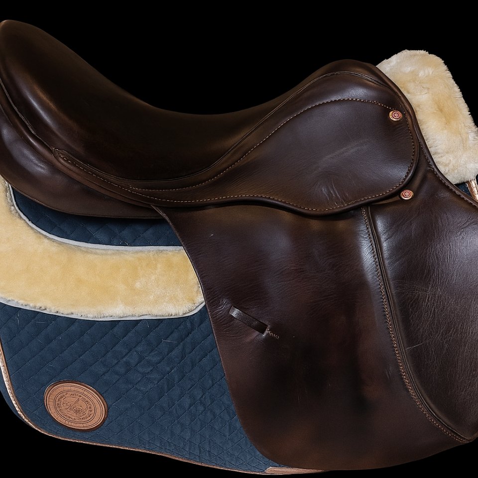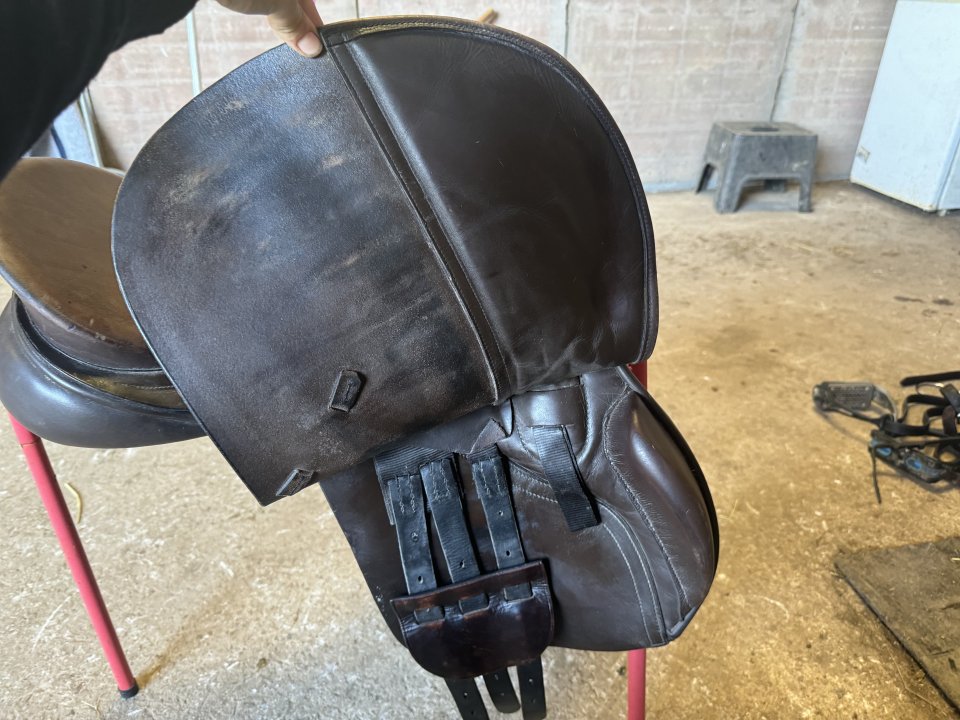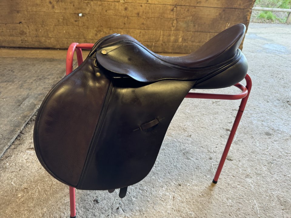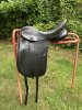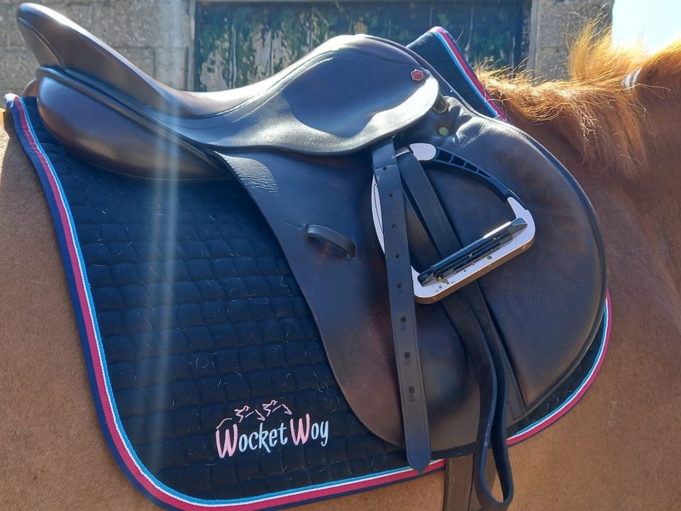 Was custom made for New Forest and other native breeds for shows. VSD style to facilitate unrestricted shoulder movement. Soft pure wool flocking with a wide gullet makes it comfortable for the horse. This saddle also benefits from front gussets which allows for more tailored flocking around the shoulders especially if the horse later changes shape with work. A gel infused seat makes it comfortable for the rider along with soft padded knee and thigh rolls so secure to jump in.