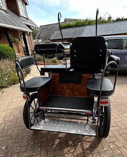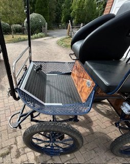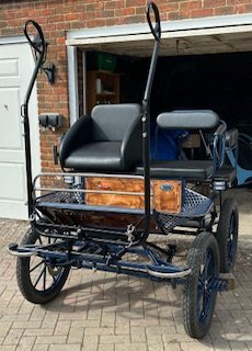 Purchased new last year Excellent condition Size from 12hh Very comfortable with a wedge seat Disc brakes all round and parking brake Pneumatic tyres and front foot steps Finished in lovely Maple wood and Blue Comes with an Equaliser bar with swingle trees and pairs pole Also fitted as an extra LED Proximity Lighting £3850 now reduced to £3450 ONO