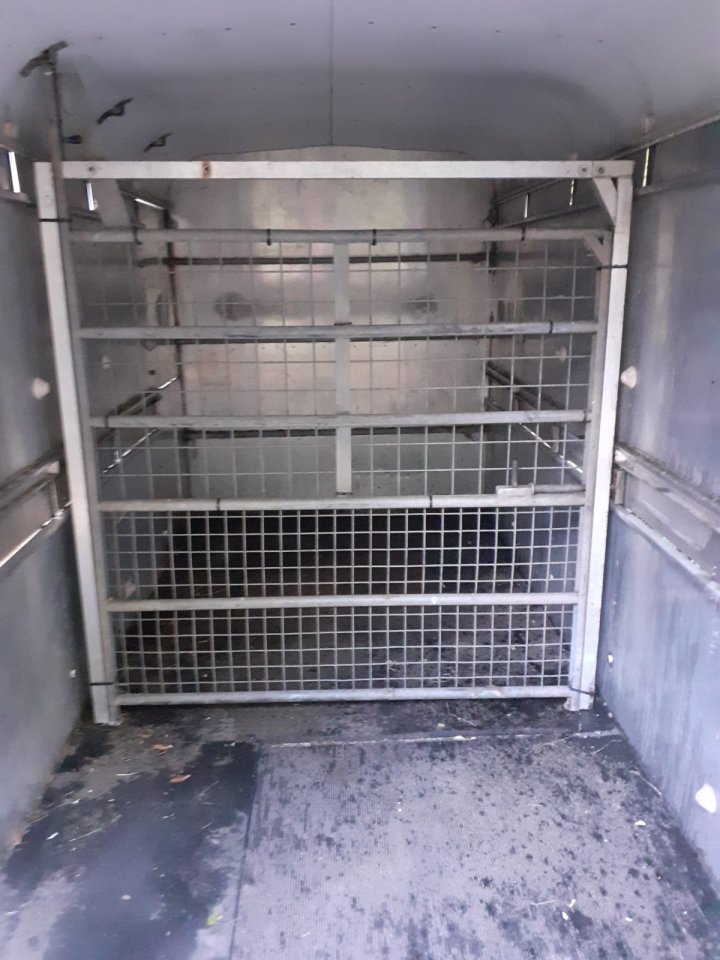 Modified full height equine safe multi-position partition and rear safety bar, aluminium floor with fitted rubber mats and loading gates. All good working order and used regularly, only for sale as gone back to having a lorry.
