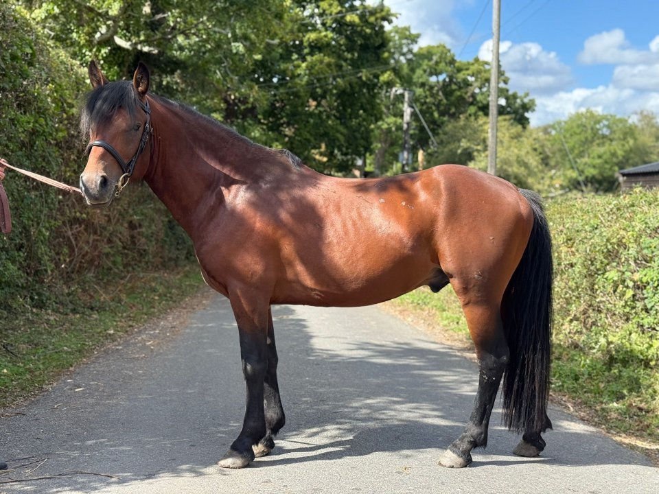 Pragnells Pippin. Registered NF 4yo gelding. 13.3hh & will finish 14hh+ Sire Pragnells Appletiser, Dam Sweetpea (Willoway Harry Potter). Pippin was a licensed stallion (gelded 6 weeks ago) & ran the forest last year. He is now ready for a new job & will make a good strong riding pony. Halter broken, ready to be backed & brought on over winter.