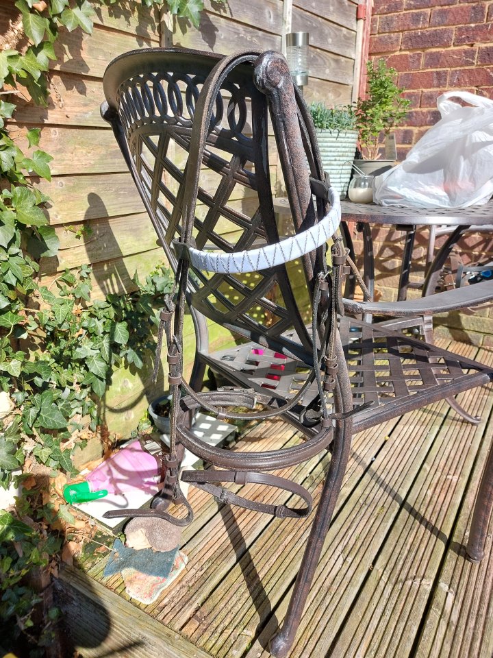 Start of a horsey clear out. New things added Purple lycra cob size fly mask. Hole for the forelock. Bit of minor damage but could easily be stitched. £4 Black fly mask. One ripped ear but again, could be stitched. £2 White wheetherbeeta full size. No damage and was washed but has been stored since hence a few marks. £4 Navy and blue lead rope. £2 Shires 'Topaz' pony size headcollar and lead rope set. No damage but would benefit from a clean. £6 for both. Flash noseband bridle. Cob size, brown. No damage. Brand new browband attached. £14. Brown cob size grippy reins. No damage. £6 Black cavessson noseband. No damage. £5 Happy mouth 5.5" full cheek bit. No damage, needs cleaning. £9 Bit straps. New. £1 Browbands. Ribbon with rosettes. New. Pony size. £5 Hi-vis ribbon. New. Pony size. £5 Stitched front. New. Pony size. £2 Padded brown, padded tan. Cob size. £2 each. Plain black. Cob size. £2 Brown stirrup leathers. Adult. £4 no damage. Cob size earless fly mask. No damage. £4 White cob sized numnah. Washed, no damage. £4 Girths; Top one is 49" buckle to buckle, buckles are rusty but usable. £2 Middle one is HY comfort 42", elasticated ends, needs a wipe but otherwise great condition. £8 Bottom one is cottage craft 45", elasticated ends, again needs a clean but otherwise in good nick. £6 Brown furry girth sleeve. £2 Thorowgood brown elasticated end girth. 46". Bit of cracking to the leather. £6 Tekna Club GP saddle. 16.5". Adjustable. £75, all offers considered. Likely more items to come, particularly if I manage to part with my cob. Offers welcome on all, especially bundles. Collection Bearwood or I can post for extra.