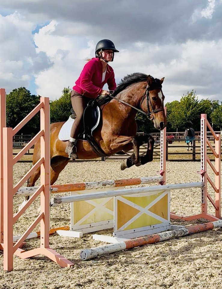 That said she’s always ridden in a snaffle and has excellent brakes! She has a very soft mouth and her riders don’t feel out of control or worried. She has been ridden by novice nervous friends and isn’t the scary type! However, the rider best suited to her is one who can already trot and canter and now wants to get out to pony club and local shows and have fun. She would happily take you round the NSEA showjumping and help to get a little person confident and out competing.