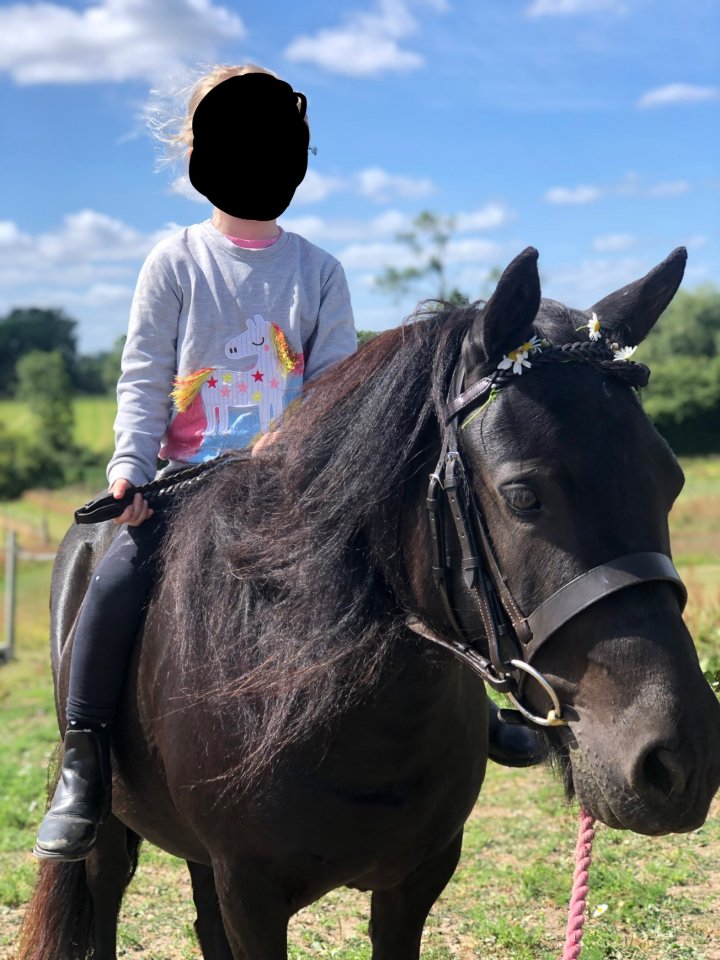 Sharptor Thomasina Registered Black Standard Mare 6yr old 40/41 inch when last measured. Professionally backed and ridden away as a 4 yr old Bright, busy, forward going mare that jumps beautifully, hacks well, good in traffic, not spooky, good to load, catch and good with farrier and dentist. Eager to work. Happy on and off lead rein. Whilst she is incredibly bombproof and confident in nature, she has proved in her previous loan home that she needs a slightly more confident/strong rider than a tiny tot learning how to ride. She’s a sweet mare that loves attention and a cuddle. She would benefit in a home that will keep her busy, she needs a job in life. Hampshire Rachel 07834812688