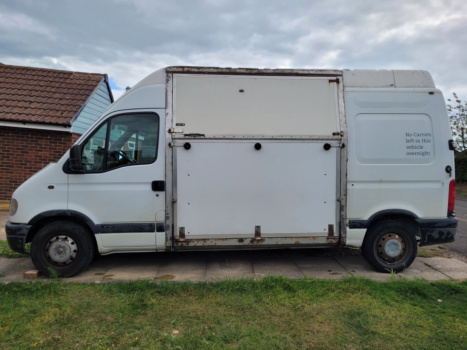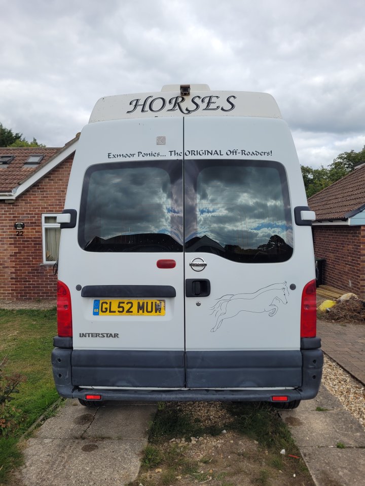 2002 Nissan Interstar 182829 miles 1.1 payload MOT till Jan 26 2 roof vents Emergency exit door with bar that drops if horses get over Horse area camera and reversing camera Converted by Three Countries Horseboxes in 2010 Aluminium floor with removable matting and drainage holes New ramp 3yrs ago Does have normal wear for its age but great box to drive. The clutch was a bit sticky last time I drove it and hasn't been used for a few months so will be sold as seen.