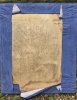 Covered with blue suede effect fabric.