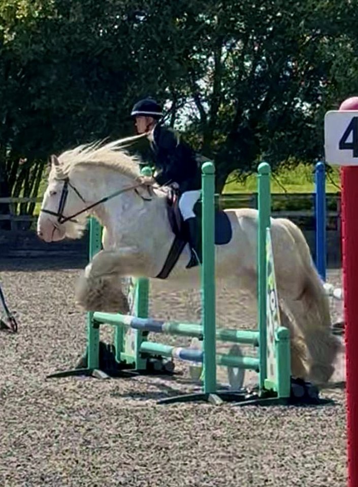 He absolutely loves to jump, has been successful SJ at upto 75cm with scope for more. He has been XC schooling and has been shown successfully inhand too. He can work really sweetly on the flat and would do a nice dressage test. He's not spooky with fillers and has been competed by a novice teenager. He has been schooled over much bigger jumps and is willing to give anything a try. He happily jumps 90 and with more fitness and a gung ho rider he would be a real performance type cob. He has had one previous home since a foal and has been hunted in Ireland by that home who we bought him from.
