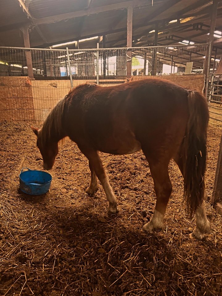 Has been produced very slowly so far, been living out in a herd and come in during winter for further education and handling. Is picking up all feet. Will lead nicely in a head collar. Getting used to grooming. Very inquisitive and kind and super willing to learn and a very quick learner.