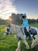 The mini cob is a lead rein pony for a novice or off lead rein for someone who knows how to ride. He is pretty unflappable but definitely not a kick along and responds well to voice commands. Max rider weight 55kg