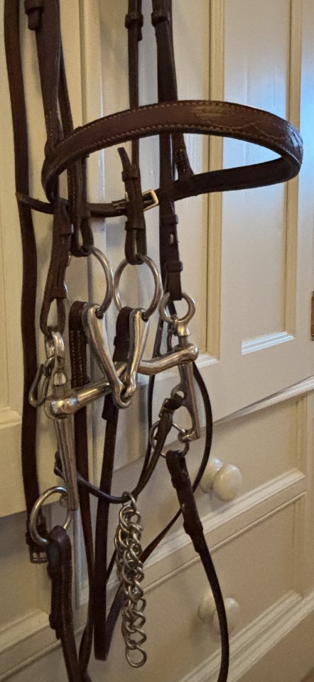 Cob sized double bridle in very good condition. Fine leather. With bits. No makers name as been owned from new for a good few years, but used only a couple of times. £40