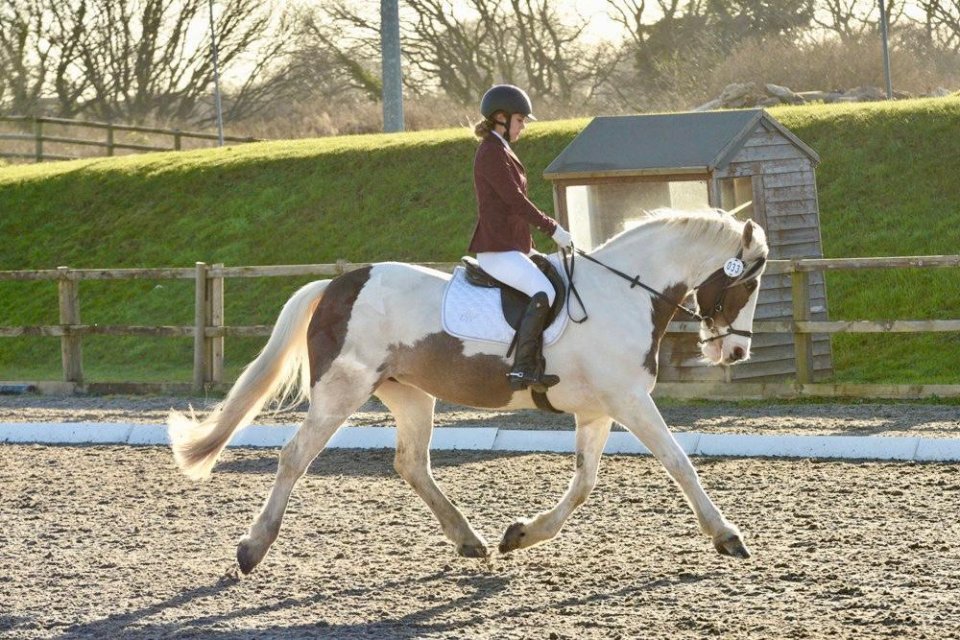 Dixie is a very well schooled all rounder looking to further in her dressage. She has competed up to Novice and has the potential to go further with the right rider. She is very good natured and well mannered, but can be excitable and strong so therefore needs an experienced rider. She loves her work and that is shown bey her eagerness to perform.