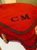 Fleece stable rug, red with navy trim, leather buckle, 5’, monogrammed CM, vgc as new - £20