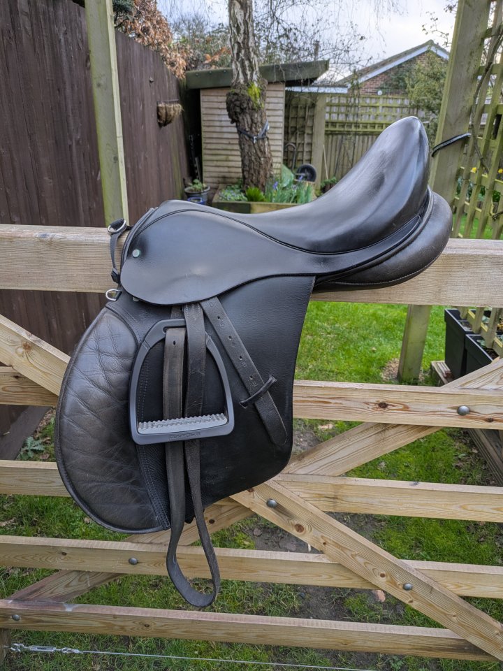17 1/2" extra wide calcutt saddle black. Made to fit in 2005. It's been regularly checked and restuffed (receipts available). Well looked after but now happily retired. Very comfortable saddle. £350 ono
